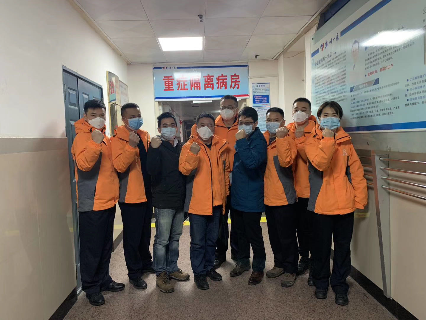 醫(yī)生團(tuán)隊共有7個人,我也將他們送到重癥隔離病區(qū)門口。我不能進(jìn)去,就和大家一起合了個影,這是我這一輩子都不能忘記的一次合影,我們每個人豎拳的手勢都那么有力,每個人的眼神都那么堅定!連最瘦弱的女醫(yī)生單雪也看起來充滿力量。