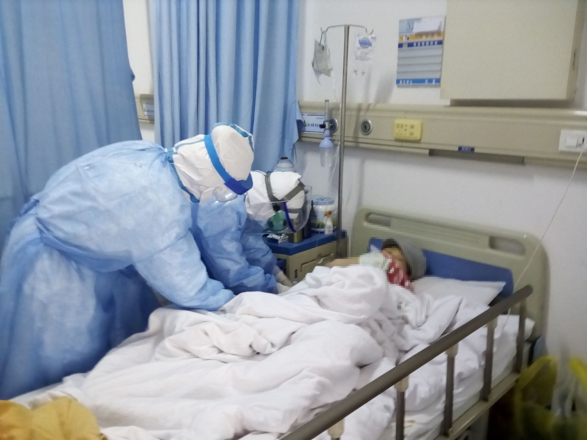 醫(yī)療隊隊員在重癥病區(qū)護(hù)理患者。