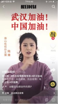 手語是聽障人士與健聽人之間最好的溝通橋梁。佛山電視臺(tái)主播陸婧,在抖音上以手指舞為中國加油,為武漢吶喊。她用手指舞演示的“一群人,一條路,堅(jiān)持一直走下去,在一起不容易,相守更加了不起”,網(wǎng)友紛紛表示淚目。早春二月,全國人民擰在一起的力量,著實(shí)令人動(dòng)容。