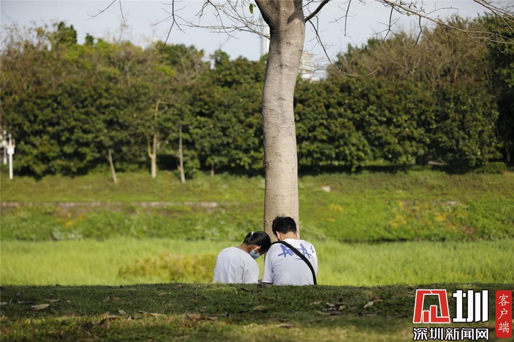 深圳中心公園,一對(duì)戴著口罩的情侶。