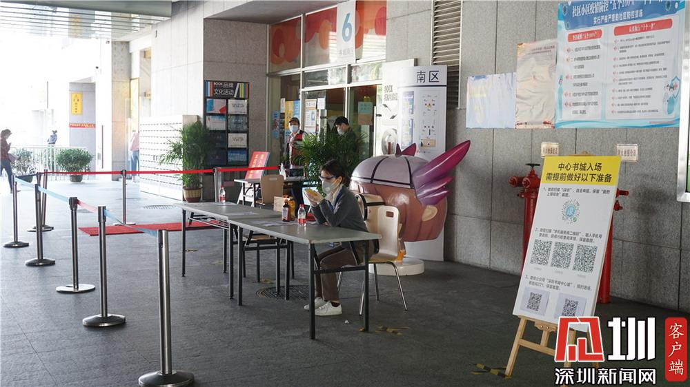 深圳中心書(shū)城已開(kāi)放,進(jìn)門(mén)要進(jìn)行嚴(yán)格的登記和檢查。