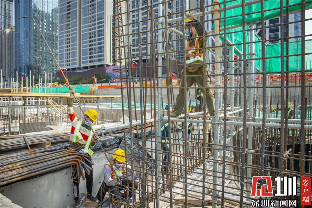 崗廈北地鐵施工工地,工人們佩戴好口罩進(jìn)行施工。