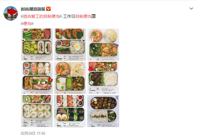 于是,網(wǎng)絡上誕生了一批自制蛋糕麻花冰淇淋,及便當?shù)牟┲?/p>
