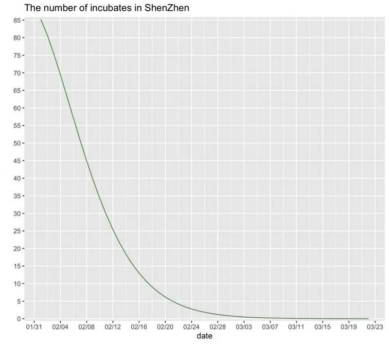 而通過模擬深圳新冠肺炎每日的潛伏者數(shù)量可以看出,2月份以來每日的潛伏者數(shù)量在持續(xù)下降,2月18日已降至個位數(shù),到3月初時潛伏者將基本清零。說明在一系列的防控措施下將病毒傳染的途徑嚴格控制,很好地防止了病毒的擴散。