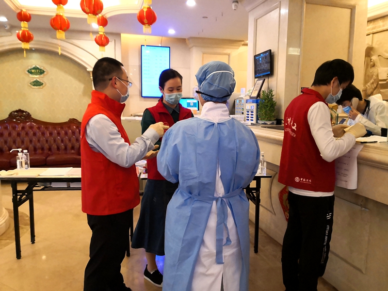 通過福田街道協(xié)調(diào),酒店方緊急召回50名員工,配合驛站建設(shè),但是大部分酒店工作人員對健康驛站并不熟悉,缺乏自我防護知識,對接下來面對的工作不無擔(dān)心。
