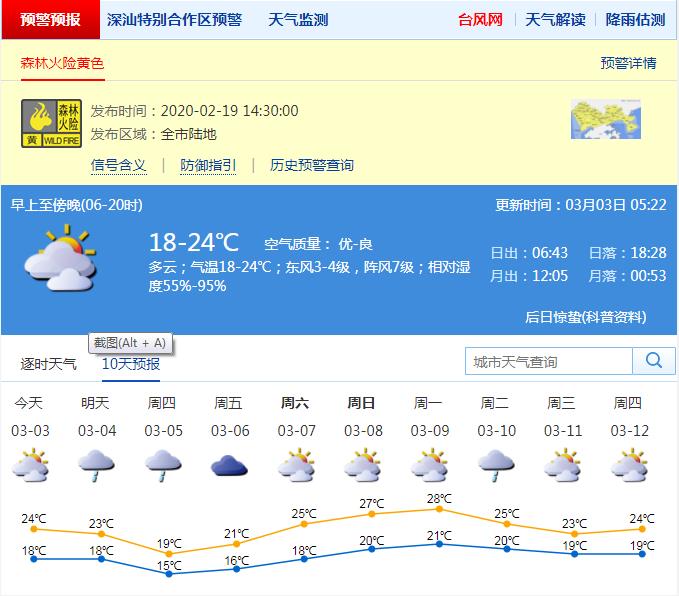 見圳客戶端·深圳新聞網(wǎng)2020年3月3日訊 據(jù)市氣象臺(tái)預(yù)測,3月3日深圳多云;氣溫17-20℃;偏東風(fēng)3級(jí),陣風(fēng)5-6級(jí);能見度5-15公里。早晨體感偏涼,注意添衣。