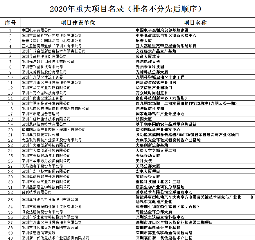 深圳市2020年重大項目計劃發(fā)布:487個重點項目曝光