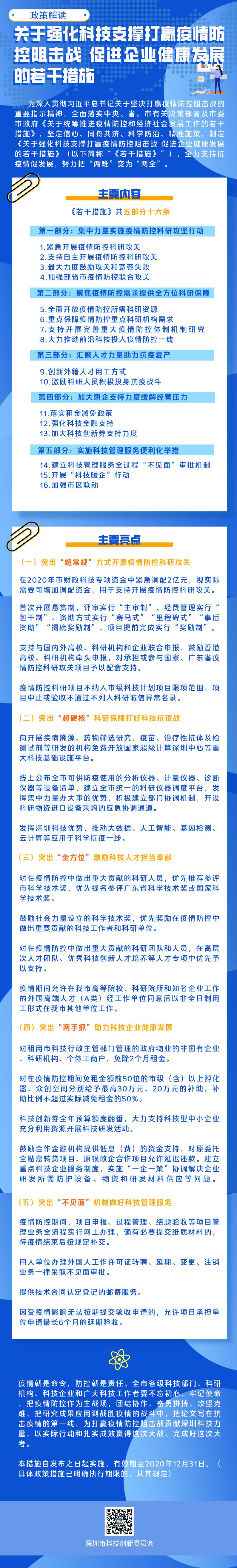 (十五)開展“科技暖企”行動(dòng)。建立重點(diǎn)科技企業(yè)服務(wù)制度,實(shí)施“一企一策”協(xié)調(diào)解決企業(yè)研發(fā)所需防護(hù)設(shè)備、物資和研發(fā)材料供應(yīng)等問題,助力企業(yè)復(fù)工復(fù)產(chǎn)。利用“互聯(lián)網(wǎng)+”開展高新技術(shù)企業(yè)認(rèn)定、企業(yè)研究開發(fā)資助和高新技術(shù)企業(yè)培育資助等扶持政策宣講和輔導(dǎo),配合市稅務(wù)部門加強(qiáng)研發(fā)費(fèi)用加計(jì)扣除、高新技術(shù)企業(yè)稅收優(yōu)惠政策宣講和輔導(dǎo),引導(dǎo)企業(yè)規(guī)范研發(fā)項(xiàng)目管理和費(fèi)用歸集。利用“鵬程IT人”網(wǎng)上招聘平臺(tái),在線舉行“深圳高科技企業(yè)2020年春季大學(xué)校園招聘會(huì)”,幫助企業(yè)解決疫情期間的大學(xué)畢業(yè)生招聘難題。