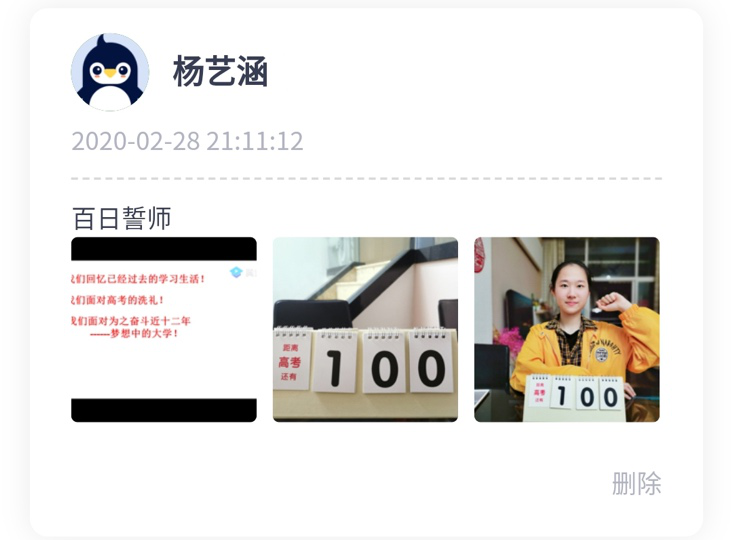 高三(3)班班主任劉靜老師則一句:“停課不停學(xué),學(xué)習(xí)不延期。戰(zhàn)“疫”告捷還,金榜得題名!”與莘莘學(xué)子共勉。高三(5)班紀(jì)勇表示,最后一百天,要少抱怨多行動,少說話多做事。努力到讓同學(xué)都震撼,勤奮到讓家長都感動,刻苦到讓老師都心疼,100天后,我們能遇見那個不敢相信的自己。高三(9)班主任朱偉紅則提醒學(xué)生們,“如果每天做透一道題,100天我們還可以做透100道題;如果每天提高一分,100天還可以提高100分。100天,僅僅是歲月長河中一朵小小的浪花,但對于我們即將赴趕高考戰(zhàn)場的人來說,它是黎明的前奏,是天籟的交響,是出征的戰(zhàn)鼓,更是拼搏的號角。”