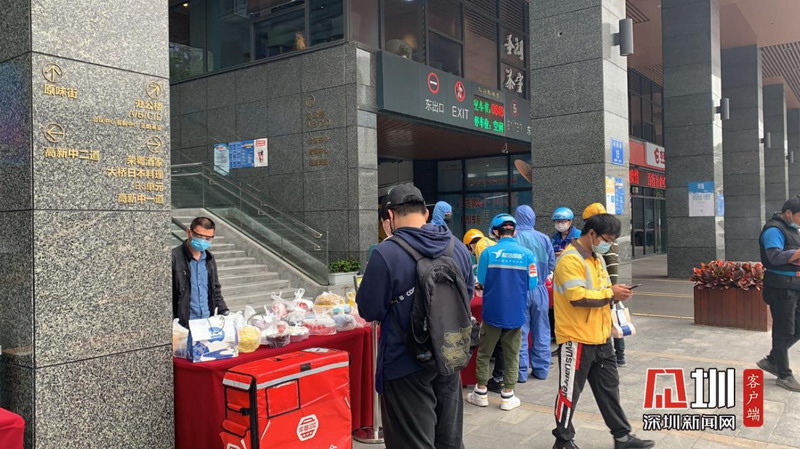 目前,人員用餐還是以外賣為主,科興科學(xué)園的美食街除了服務(wù)本園區(qū)外,也為周邊人員提供用餐服務(wù)。園區(qū)鼓勵大家盡量線上點餐,由相關(guān)人員下樓統(tǒng)一取餐,再分散自行用餐,避免人員聚集。