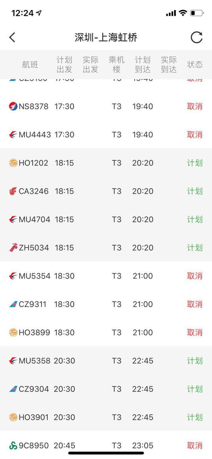 不僅是深圳飛往杭州的CA1736航班,記者發(fā)現(xiàn),今晚深圳飛往北京、上海、南京等國內(nèi)多個城市的航班,均顯示為取消狀態(tài)。而原計劃17:45由深圳飛往杭州的CA1734和原計劃22:05由深圳飛往杭州的MF8384航班,均顯示為取消狀態(tài)。