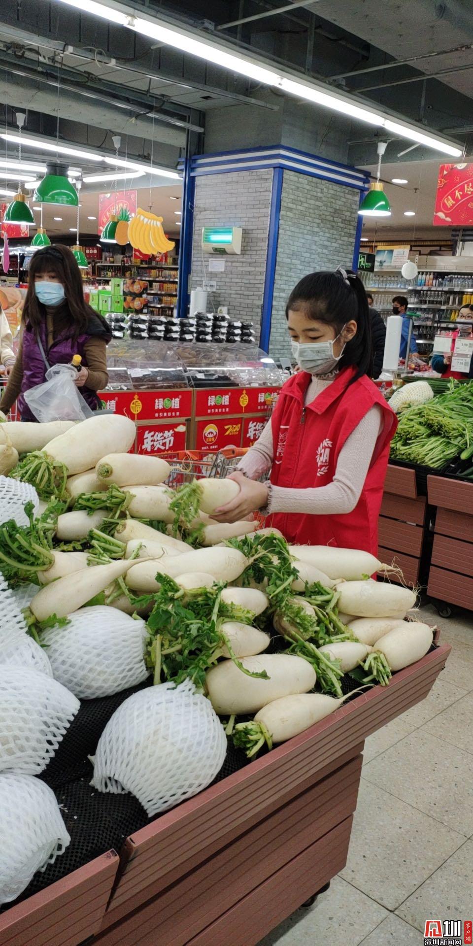 隨著疫情發(fā)生,春節(jié)期間待在深圳的露茜隨媽媽投身到了防疫一線,從事食品藥品安全志愿服務工作。在商場維持秩序,為市民挑揀蔬菜,成為了顧客眼中“別人家的孩子”。