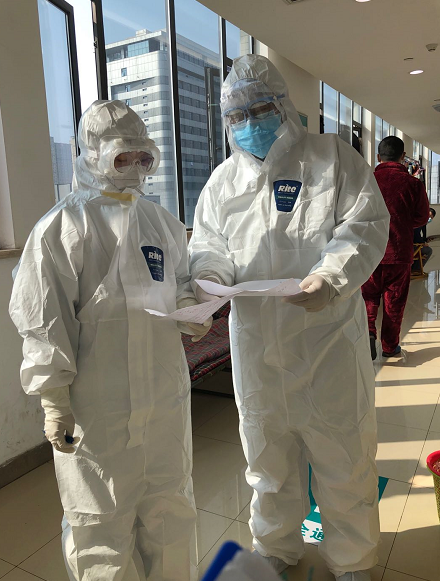 隨后春運(yùn)返鄉(xiāng)潮高峰很快到來(lái),醫(yī)院發(fā)熱患者開(kāi)始突增,收住病人持續(xù)增加,按照院領(lǐng)導(dǎo)指示,感染科立即開(kāi)始調(diào)整床位,調(diào)整醫(yī)生班次,收治發(fā)熱患者,加強(qiáng)防護(hù)調(diào)配。黃主任全程參與,每天忙得昏天暗地。尤其是隨著縣中醫(yī)院隔離病區(qū)的展開(kāi),感染科主任和另外一位醫(yī)生被派到中醫(yī)院支援,人民醫(yī)院感染科所有的擔(dān)子基本上就全壓在他身上了。每天要下好幾次病房,查看所有患者的診治情況,了解病情變化、做流行病學(xué)調(diào)查、采集患者信息、上報(bào)疫情、參與會(huì)診......每天工作電話上百計(jì),吃住都在科室,連醫(yī)院集中隔離的宿舍都很少回去,更別說(shuō)顧及家人了。在連續(xù)奮戰(zhàn)了半個(gè)月后,他才第一次接到了八十多歲的老父親打來(lái)的電話,頓時(shí)鼻子一酸眼眶泛淚,原來(lái)父母在家里用的是每天洗了重復(fù)使用的口罩。