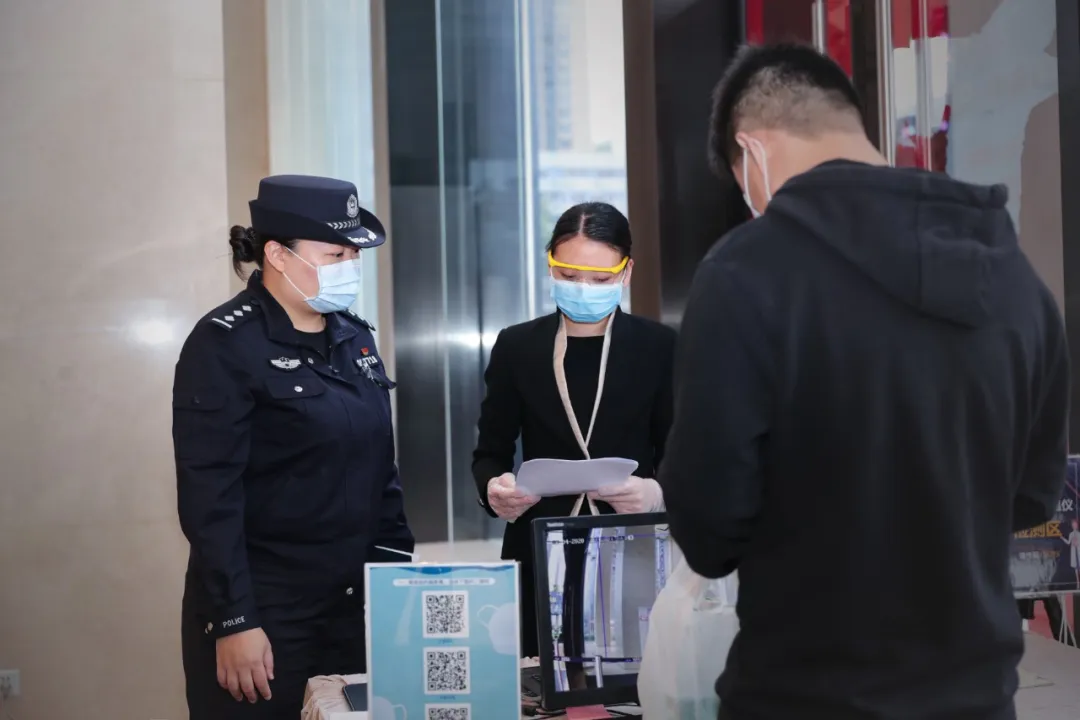 梅林店鋪約3000余家,隨著復(fù)工企業(yè)越來越多,防控工作也面臨不小挑戰(zhàn)。卓悅匯商鋪多、人流大,民警聯(lián)合街道、工作站、安監(jiān)等部門防疫檢查時,發(fā)現(xiàn)商場使用手持測溫儀,效率不高,易造成排隊(duì)聚集。為解決這個難題,田晶瑩多方奔走,聯(lián)合社區(qū)民警與商場負(fù)責(zé)人多次溝通。