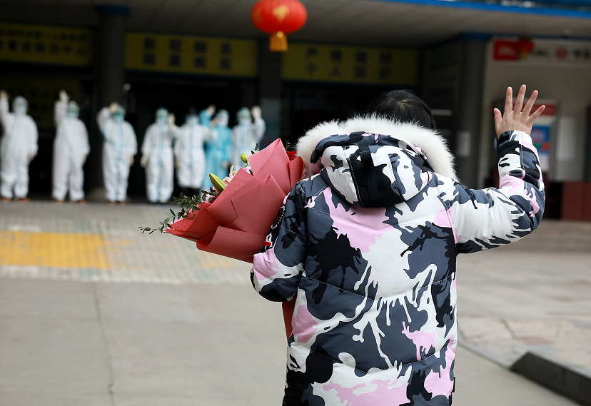 “你住院的消息讓醫(yī)療隊(duì)、指揮部和廣東人民都很牽掛?!眲?guó)斌說(shuō),“遠(yuǎn)程會(huì)診時(shí),鐘南山院士除了提供了專業(yè)的指導(dǎo)意見,還一再叮囑,一定要好好照顧你。你是一名了不起的抗疫戰(zhàn)士,是‘白衣天使’的驕傲。”他還囑咐張冬雪,出院后的隔離階段要好好休息,早日完全康復(fù),并邀請(qǐng)她以后來(lái)廣東,和醫(yī)療隊(duì)隊(duì)員進(jìn)行交流、研討。周琳高興地?fù)]著手對(duì)張冬雪說(shuō):“很快就到三八節(jié)了,提前祝你節(jié)日快樂(lè)!”
