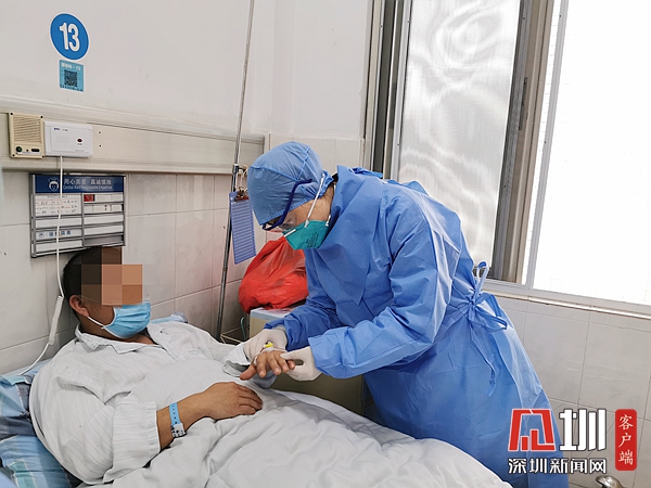 剛剛看到檢測(cè)結(jié)果,鄺醫(yī)生便迅速穿上防護(hù)服,進(jìn)入隔離區(qū)跟患者進(jìn)行了面對(duì)面的溝通交流。那位患者得知自己檢測(cè)的結(jié)果后略顯失落,嘆了一口氣,似乎是擔(dān)心焦慮等待了多日,心里的石頭終于落了地。他說(shuō):“我一定聽(tīng)您的話,好好吃藥,好好治療,爭(zhēng)取活著回來(lái)?!?/p>