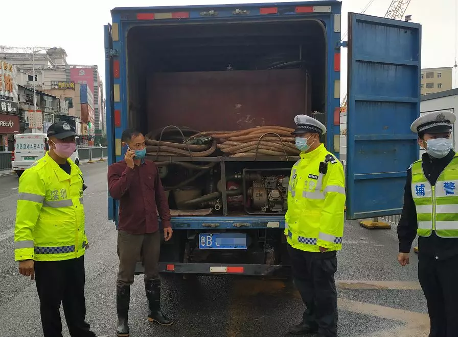 3月9日上午,深圳交警在坪山深汕路六合城路段對過往貨車進行綠碼申報宣傳,一輛粵B號牌輕型廂式貨車引起現(xiàn)場民警注意,執(zhí)勤民警第一時間上前將該車攔至一旁進行調(diào)查。