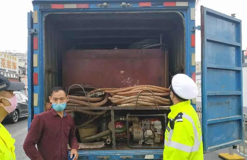 現(xiàn)場民警對駕駛員劉某林進行詢問調(diào)查時,只見劉某林眼神閃躲,言辭不清;此外,現(xiàn)場民警聞到車內(nèi)傳出很濃的油味,而當(dāng)民警要求劉某林將貨車車廂門打開時,其更是一度表現(xiàn)抗拒,稱鑰匙不在自己身上,不肯打開后車廂給民警查看。