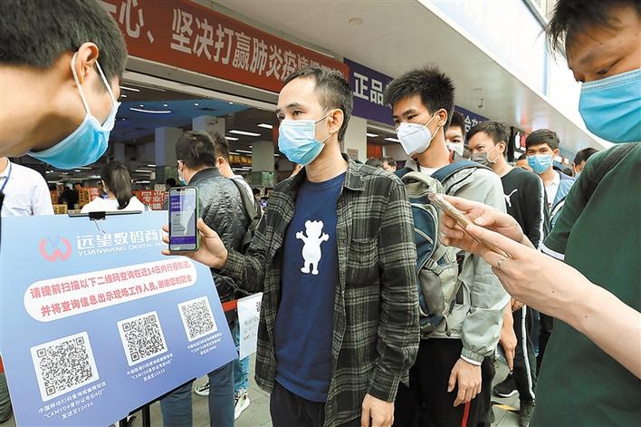 為方便市場(chǎng)了解人員去向,華強(qiáng)北街道指導(dǎo)市場(chǎng)管理方利用運(yùn)營(yíng)商推送服務(wù),引導(dǎo)商戶通過掃描相應(yīng)的運(yùn)營(yíng)商二維碼,獲取人員過去14天去向,做到入場(chǎng)人員信息“一掃清”。根據(jù)有關(guān)通知,商戶準(zhǔn)備好自己的健康檔案、i深圳、“一掃清”等信息,經(jīng)現(xiàn)場(chǎng)測(cè)溫正常,若是從外地返深人員,按要求進(jìn)行居家隔離后,才能順利取得市場(chǎng)商戶通行證。通行證需要配合身份證使用,確保一人一證。另外,華強(qiáng)北街道還通過升級(jí)通風(fēng)系統(tǒng)等方式加大了室內(nèi)空氣流動(dòng)量。(深圳商報(bào)記者 余海波 攝影報(bào)道)