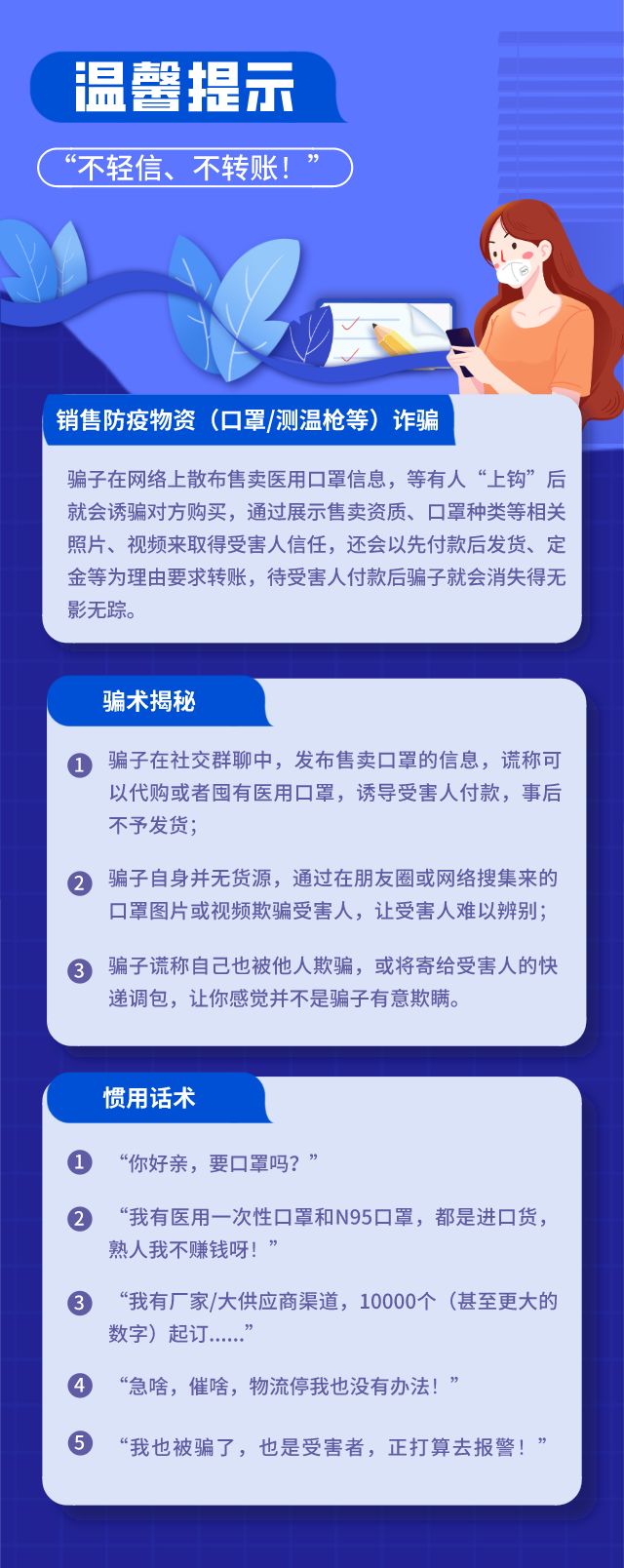 “我來報警!群里有人騙我口罩錢!” 3月4日,事主李小姐匆匆來到深圳市公安局福田分局香蜜湖派出所報案并講述了自己被騙的經(jīng)過。 此前李小姐在某社區(qū)賣菜群里,看到了一名群友發(fā)布“口罩資源”的信息,于是加其為好友,對方向李小姐展示了售賣資質(zhì)以及售賣口罩的樣品,一步步讓李小姐放松了警惕,雙方以1.75元/個醫(yī)用口罩、9元/個N94口罩的價格談妥交易。 隨后李小姐通過轉(zhuǎn)賬先向?qū)Ψ劫徺I了一批口罩。李小姐覺得對方還挺靠譜的,就又分四次向?qū)Ψ睫D(zhuǎn)賬,分別郵寄給自己不同的朋友,累計向?qū)Ψ睫D(zhuǎn)賬了990元。 不料所有的錢轉(zhuǎn)過去之后,這個群友卻消失了,發(fā)信息不回,打視頻不接,雖未拉黑但也沒任何回應(yīng)。“十分氣人,被騙的錢雖然不多,但是一定要給詐騙分子嚴懲!”李小姐對民警這樣講述道。 民生小案無小事,數(shù)百元現(xiàn)金被騙,電單車被盜……這些看似平常的一件件“小”案,背后牽連的卻是廣大群眾的幸福感、安全感。 香蜜湖派出所民警聚力破小案,服務(wù)大民生,做到有案必偵,快偵快破。經(jīng)多方面調(diào)查后,最終確定了嫌疑人的身份——游某。3月9日11時許,福田警方將嫌疑人游某抓獲。 ▲嫌疑人通過網(wǎng)絡(luò)發(fā)布虛假信息進行詐騙 據(jù)了解,游某于2019年下半年來到深圳,此前加入了一個社區(qū)賣菜群。不久前,游某因手頭緊,于是就在群里發(fā)布消息,謊稱自己有大量口罩待出售。 游某在群里發(fā)布買賣“口罩”信息,會不會還有其他的受害者?這是民警第一時間的直覺。隨著調(diào)查的深入,民警發(fā)現(xiàn)還有其他受害者與游某聯(lián)系購買“口罩”及多筆手機轉(zhuǎn)賬記錄,金額雖然不大,大多為80元、100元、115元、175元……各個個案的涉案金額看起來都是“小錢”,但我們的民警還是盡心盡力,絲毫沒有放松,一項項認真核實并一一做好記錄。 據(jù)初步統(tǒng)計,從1月30日至今,游某通過向他人售賣口罩實施詐騙,累計詐騙4000余元,被騙的受害人多達16人! ▲民警抓獲嫌疑人 現(xiàn)游某對利用網(wǎng)絡(luò)實施口罩詐騙的行為供認不諱,已被警方依法刑事拘留,在香蜜湖派出所民警的聯(lián)系下,目前已有受害群友相繼前來協(xié)助調(diào)查,案件仍在進一步調(diào)查中。 ▲民警審訊嫌疑人 警言警語 香蜜湖派出所 民警鄭卓 疫情期間,不少企業(yè)和個人紛紛采購口罩等防護用品。針對利用口罩等防疫物資實施詐騙等違法犯罪行為的不法分子,福田警方堅決從嚴從快依法打擊。廣大市民謹記,購買口罩、消毒液等防疫物資,要通過正規(guī)途徑,做到“不輕信、不轉(zhuǎn)賬”,避免上當受騙。