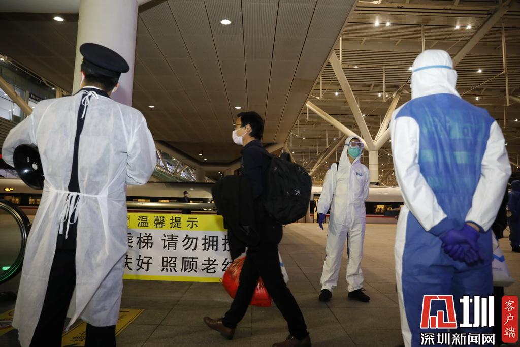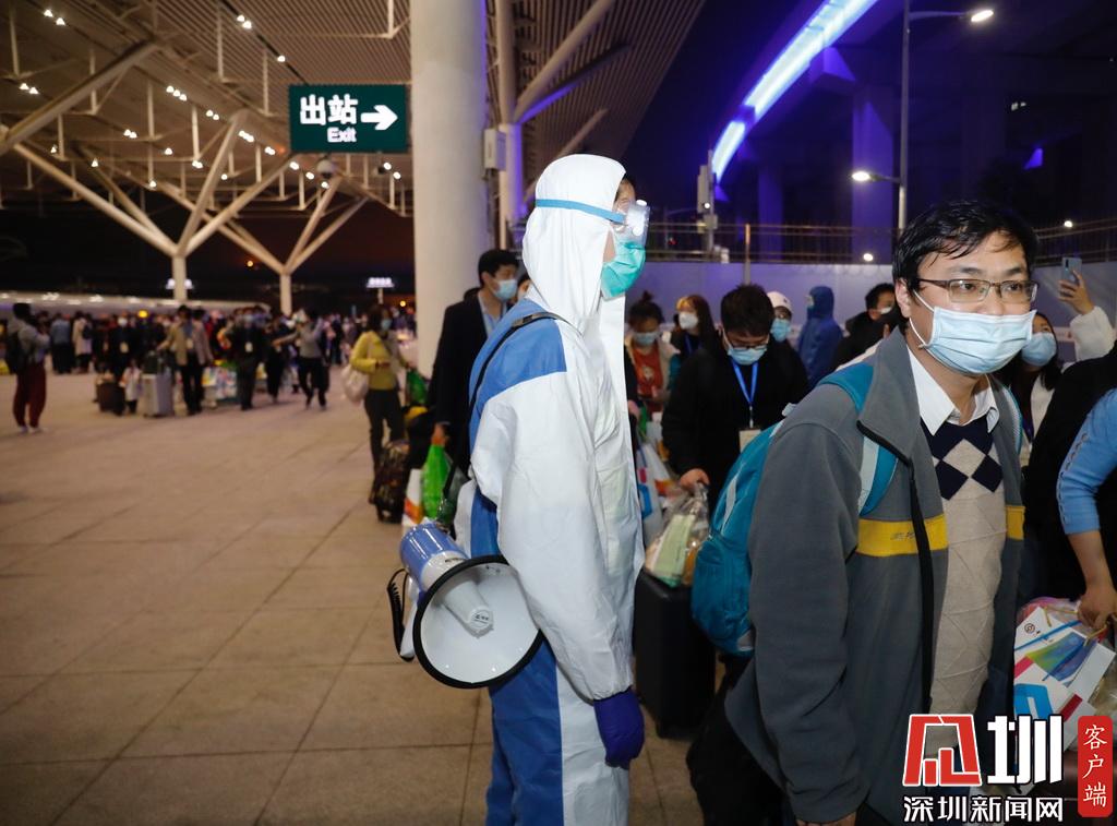 深圳北站客運(yùn)車間黨總支書記龔建力告訴記者,為了確保湖北返深專列安全??空九_,深圳北站提前加強(qiáng)了清潔工作,并增派相關(guān)工作人員,確保返深湖北籍乘客有序安全出站。
