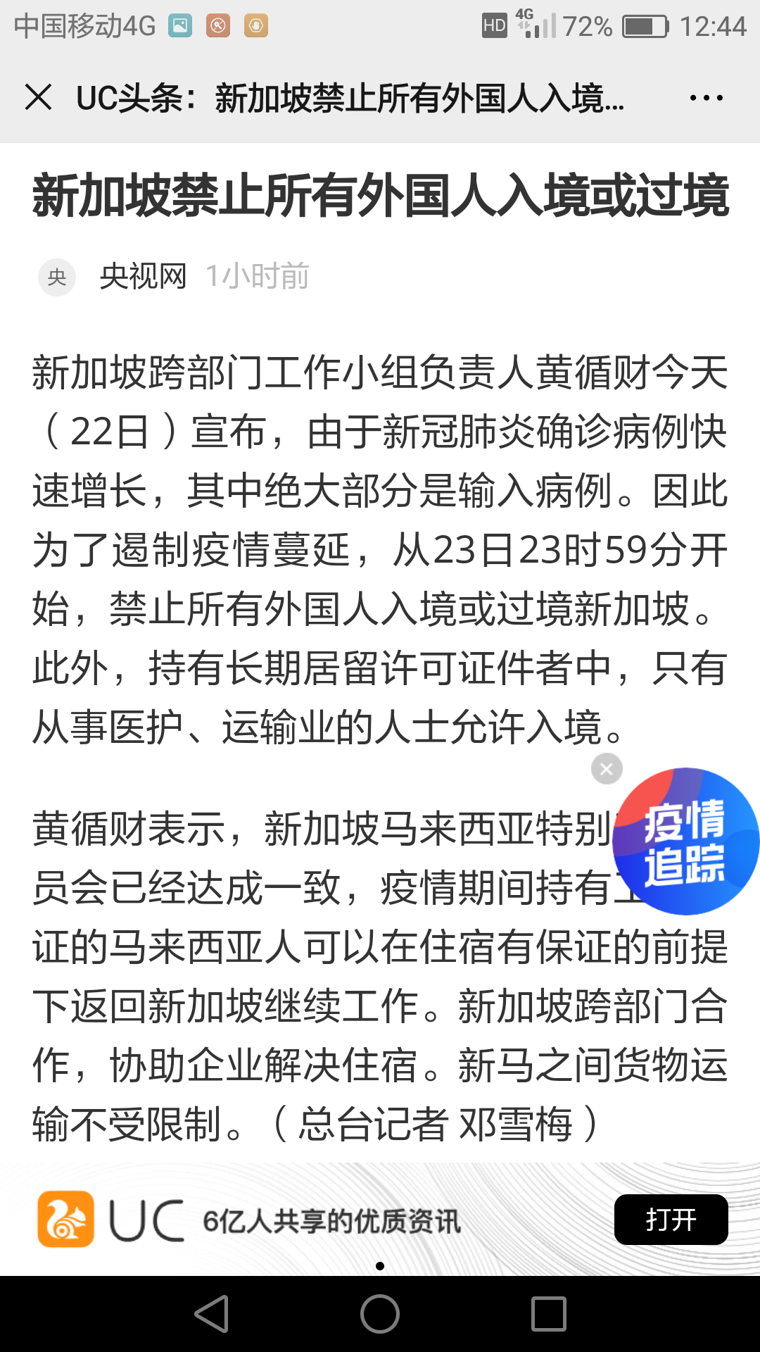 今日早些時(shí)候,據(jù)央視網(wǎng)報(bào)道,新加坡跨部門工作小組負(fù)責(zé)人宣布,為遏制疫情蔓延,從23日23時(shí)59分開始,禁止所有外國人入境或過境新加坡。同時(shí),持有長期居留許可證件者中,也只有從事醫(yī)護(hù)、運(yùn)輸業(yè)的人士允許入境。(記者蔡良煥)