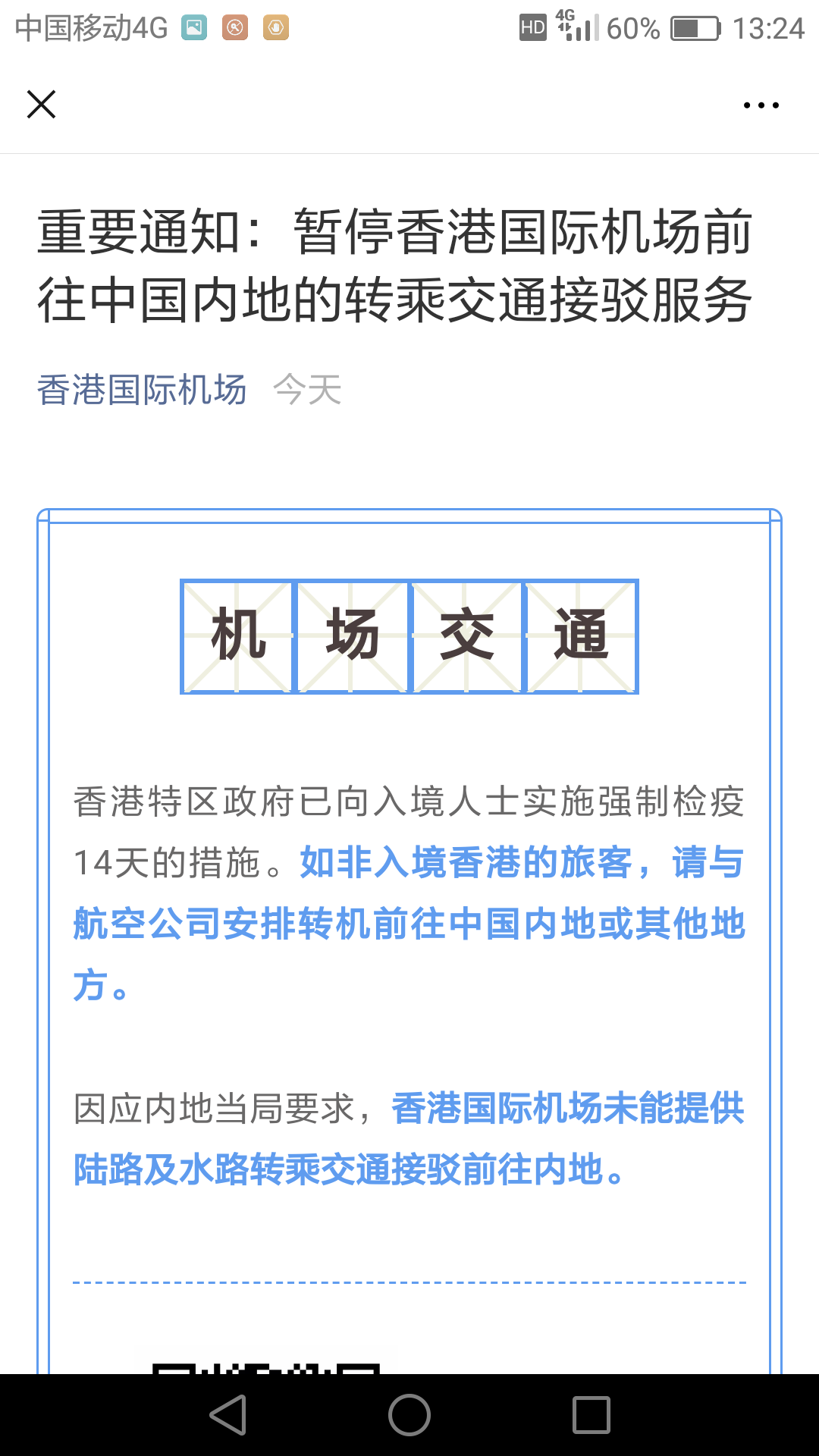 22日早間,來自香港國際機(jī)場的消息稱,香港特區(qū)政府已向入境人士實(shí)施強(qiáng)制檢疫14天措施,香港國際機(jī)場將不能提供陸路及水路轉(zhuǎn)乘交通接駁前往內(nèi)地。