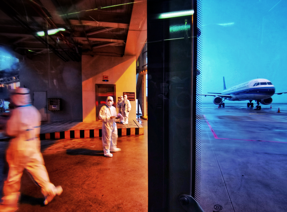 將近25個(gè)小時(shí)的路途,最困難的就是穿著防護(hù)服,要做到全程不吃不喝不上廁所。但是,為了自身和他人的健康,我只能克服。在轉(zhuǎn)乘的5個(gè)小時(shí)里,才喝了一些水,上了趟廁所。即便是上廁所時(shí),我也是戴好一次性手套,用紙巾擦拭所有摸過的地方。