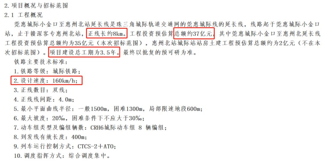 此間公示的莞惠城際小金口至惠州北站延長線,則是珠三角城際軌道交通網(wǎng)的莞惠城際線的延長線,線路起于莞惠城際小金口站,止于贛深客專惠州北站,正線長約8km,設(shè)計(jì)速度為160km/h。工程投資預(yù)估算總額約37億元,其中莞惠城際小金口至惠州北延長線工程投資預(yù)估算總額約為35億元(本次招標(biāo)范圍),惠州北站城際站站房土建工程預(yù)估算總額約為2億元(不在本次招標(biāo)范圍)。