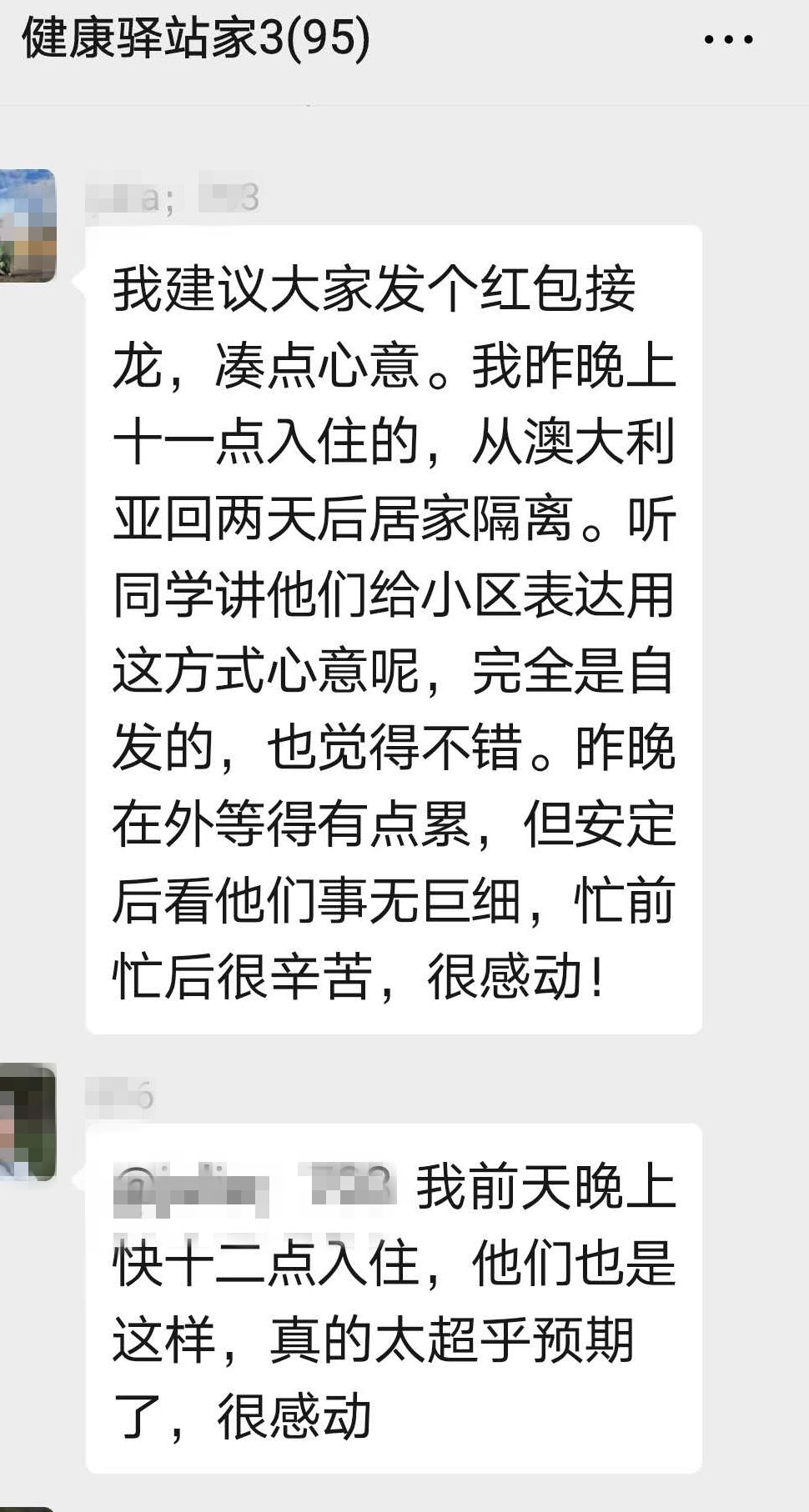 第二天,阿姨在微信群里說,昨晚雖然在外面等的有點(diǎn)累,但是看到工作人員事無巨細(xì),忙前忙后很辛苦,非常感動,想以紅包接龍的方式表達(dá)對工作人員的感謝。醫(yī)護(hù)人員拒絕了阿姨的好意,心里暖暖的:“我們用醫(yī)務(wù)工作者的初心,用我們的耐心和愛心做好了工作,一切辛苦都值得了。”