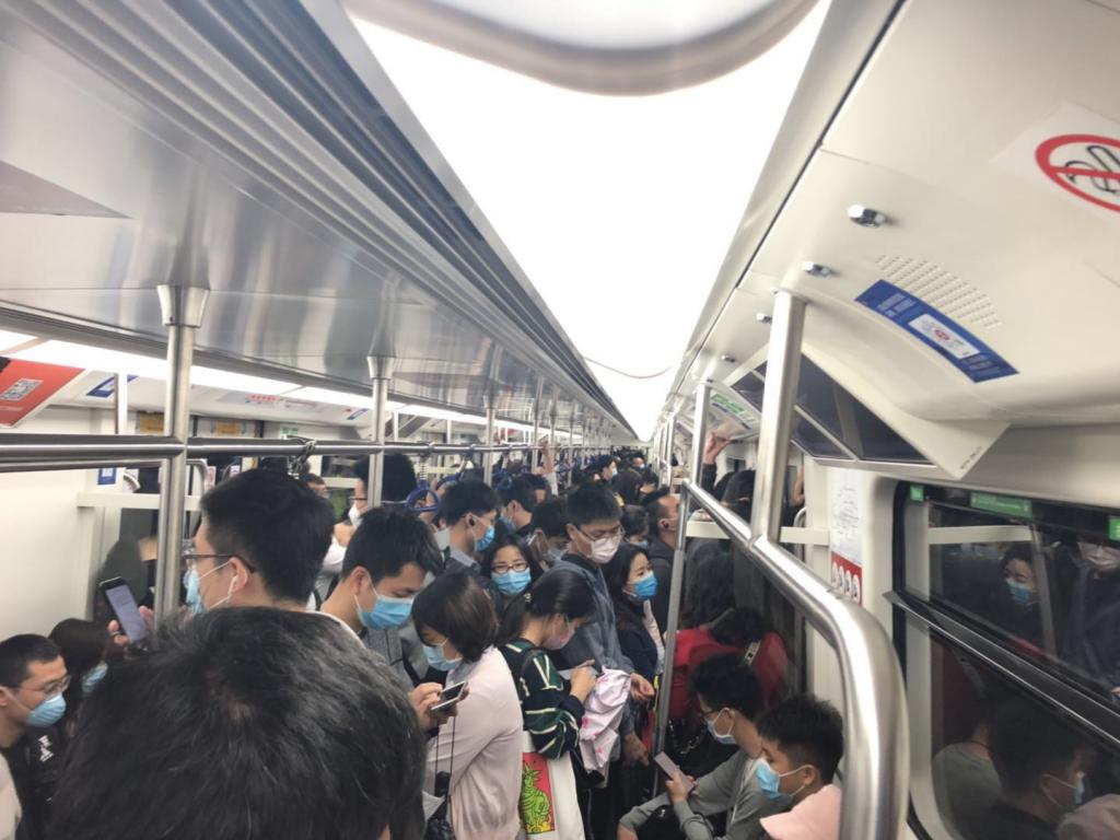 ▲地鐵4號(hào)線早高峰相對擁擠。