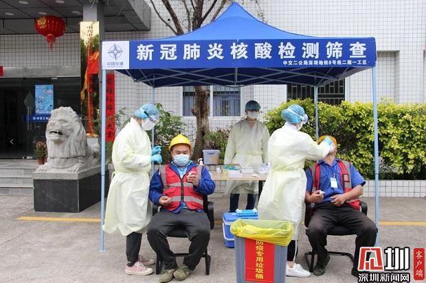 地鐵8號線二期工地內(nèi)對工人進(jìn)行新冠肺炎核酸檢測篩查。