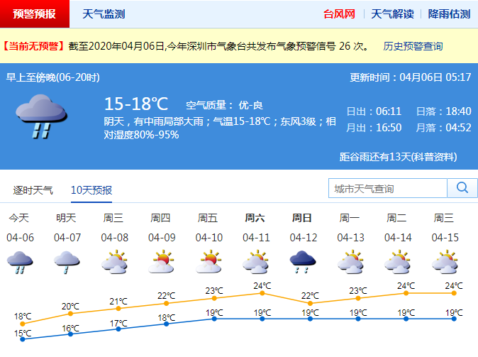 預(yù)計(jì)下周三可見陽(yáng)光,受冷空氣和切變線影響,4月5日夜間至6日有大雨,局部暴雨,伴有雷暴和短時(shí)大風(fēng),最低氣溫13-15℃,天氣清涼,4月7日轉(zhuǎn)陣雨天氣,4月8日氣溫回升。