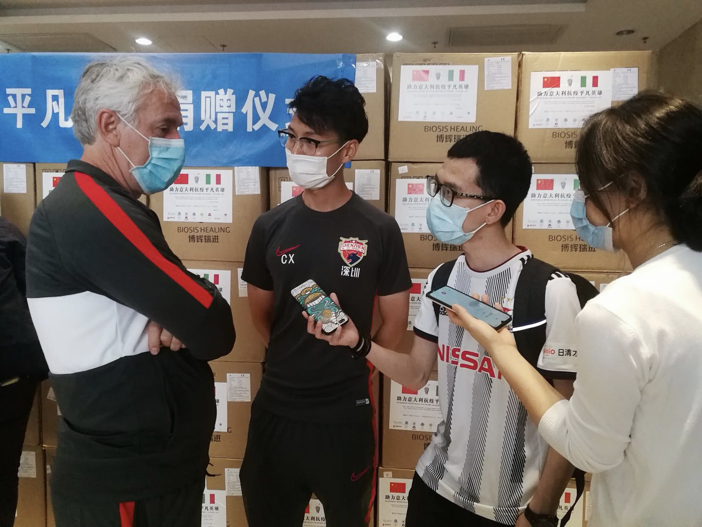 “感謝深圳?!碑斕?,AC米蘭俱樂部前教練、深圳佳兆業(yè)足球隊主教練多納多尼作為在深意大利人代表也來到了活動現(xiàn)場。他表示,來深圳不到一年,已經(jīng)深刻感受到深圳的城市魅力?!爸袊谶@次抗擊疫情的過程中表現(xiàn)完美,每個人的一舉一動不僅是為自己,更是為別人,這非常令我感動。此次捐贈對于意大利來說十分重要,我代表我的祖國向大家表示由衷的感謝?!倍嗉{多尼在現(xiàn)場動情地說。(記者 許舜鈿)