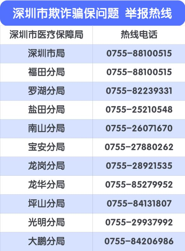 市醫(yī)保局已在深圳市各區(qū)設(shè)立投訴舉報(bào)電話,歡迎廣大市民共同參與醫(yī)保基金監(jiān)督管理。市民可通過實(shí)名舉報(bào)和匿名舉報(bào)方式檢舉、揭發(fā)欺詐騙保行為,經(jīng)查證屬實(shí)的,將根據(jù)《深圳市欺詐騙取醫(yī)療保障基金行為舉報(bào)獎(jiǎng)勵(lì)實(shí)施細(xì)則(試行)》對舉報(bào)人予以獎(jiǎng)勵(lì),獎(jiǎng)金最高可達(dá)10萬元!(記者 莊瑞玉)