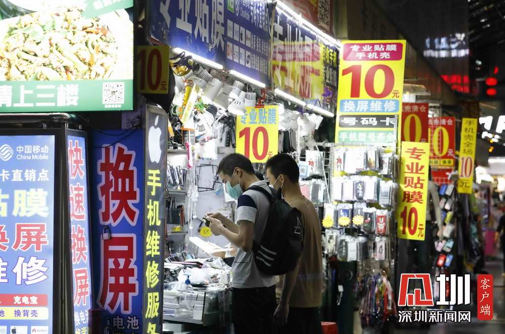 東門(mén)步行街的手機(jī)配件門(mén)店前,兩位市民正在選購(gòu)。