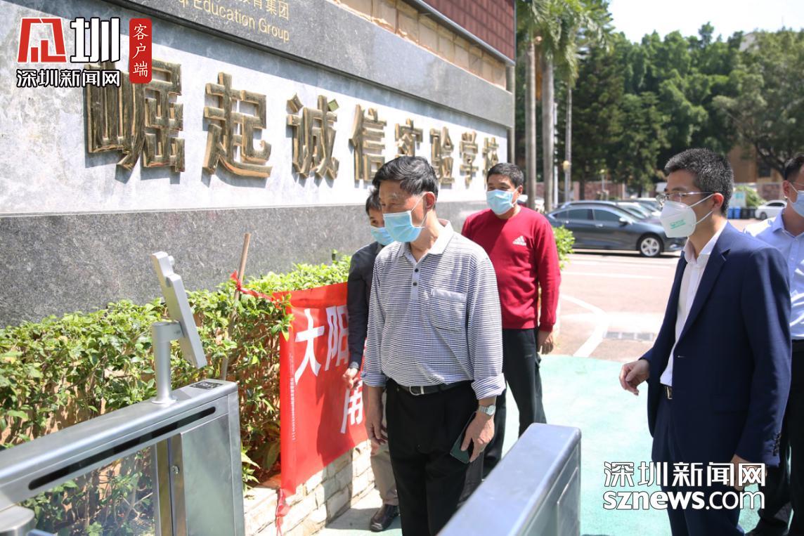 崛起教育集團總裁、總校校長曾立奇正在通過測溫人臉識別通道