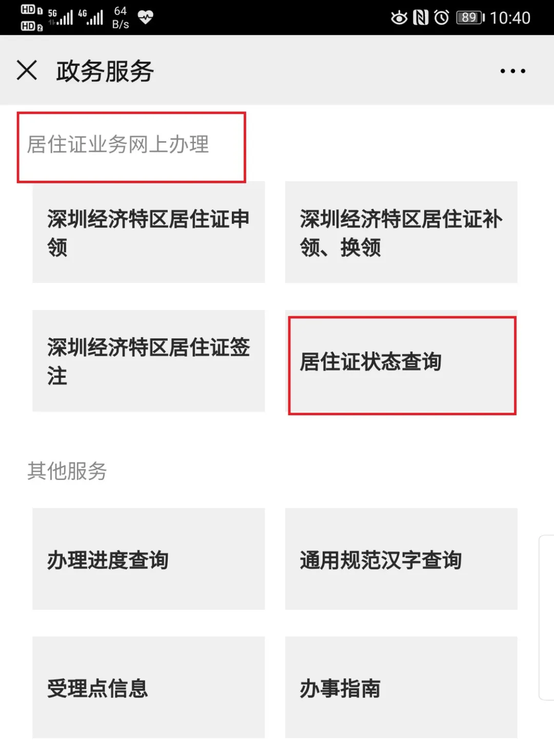 2、點(diǎn)擊“居住證業(yè)務(wù)網(wǎng)上辦理”-“居住證狀態(tài)查詢”