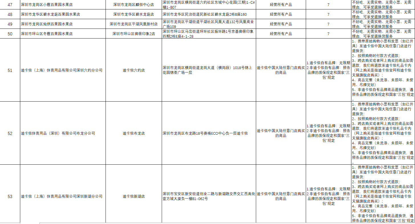 “首批參與的部分企業(yè)承諾遠(yuǎn)高于活動(dòng)基本要求,退貨期限不止是7天?!笔邢瘯?huì)相關(guān)負(fù)責(zé)人舉例說(shuō),天虹商場(chǎng)聯(lián)營(yíng)服裝鞋帽類和日用商品類承諾的退貨限期為30天,錢(qián)大媽和迪卡儂自有品牌承諾無(wú)退貨限期。