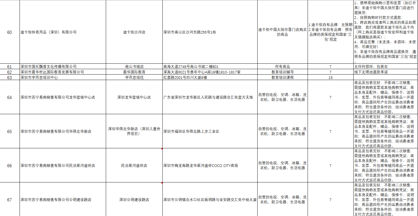 見(jiàn)圳客戶端·深圳新聞網(wǎng)2020年4月30日訊(深圳特區(qū)報(bào)記者 莊瑞玉 通訊員 張媛)在深圳實(shí)體店購(gòu)物也可以無(wú)理由退貨了!30日,記者從深圳市消費(fèi)者委員會(huì)獲悉,由市消委會(huì)發(fā)起的“凝聚你我力量讓消費(fèi)更溫暖”系列公益活動(dòng)之“線下無(wú)理由退貨承諾”活動(dòng),獲得行業(yè)協(xié)會(huì)、大型商場(chǎng)、連鎖品牌的積極響應(yīng),目前已有蘇寧、天虹商場(chǎng)、迪卡儂、優(yōu)衣庫(kù)、百果園、錢(qián)大媽、學(xué)而思、嘉華世達(dá)和國(guó)樂(lè)飄香9家企業(yè)旗下共計(jì)160家門(mén)店成為深圳首批“線下無(wú)理由退貨”實(shí)體店,消費(fèi)者可以放心買(mǎi)買(mǎi)買(mǎi)了!
