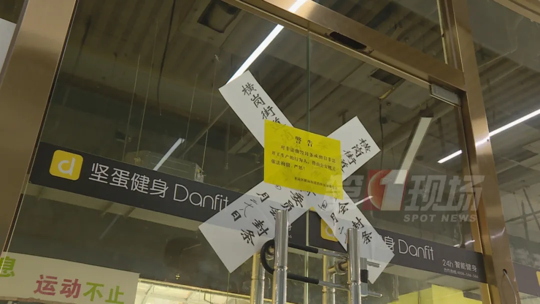 記者來到事發(fā)的新世界廣場三樓,發(fā)現(xiàn)通往天臺(tái)的大門已經(jīng)上鎖,而樓梯過道則是堆滿了裝修器材,裝修工人墜落的健身房區(qū)域已被貼上封條。