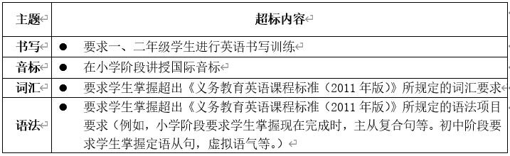 1.培訓不得超出現(xiàn)行義務教育英語課程標準規(guī)定的各學段分級標準,禁止將初中知識類的教學內容提前至小學教學與測評,禁止將現(xiàn)行普通高中英語課程標準規(guī)定的知識類教學內容提前至初中教學與測評。