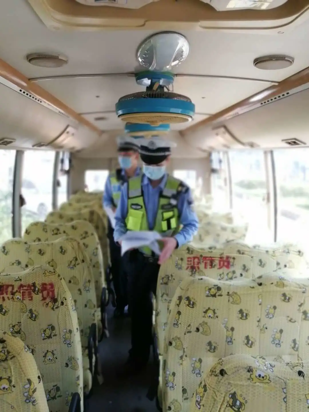 檢查校車車況及安全裝置,是否落實(shí)“每個座位一條安全帶”、配備行駛記錄功能的衛(wèi)星定位裝置、干粉滅火器、急救箱和照管人員座椅(位)、應(yīng)急出口和應(yīng)急錘(逃生錘)等安全設(shè)備、噴涂放大牌號和統(tǒng)一顏色、粘貼標(biāo)識等。