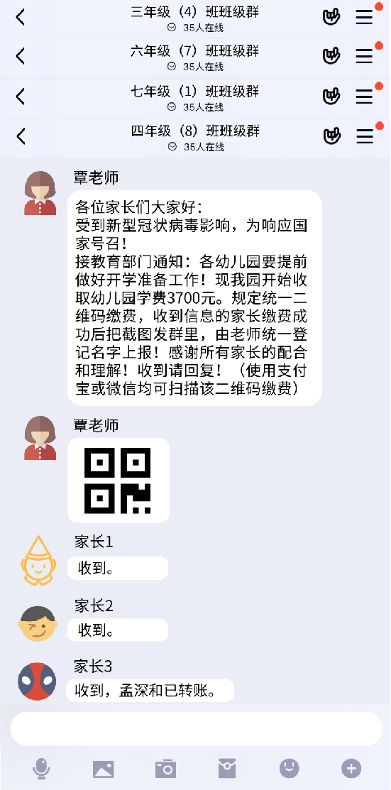 騙子在收款后立即退群,等真老師上線后,被騙父母醒悟過(guò)來(lái)后,騙子已經(jīng)逃之夭夭。