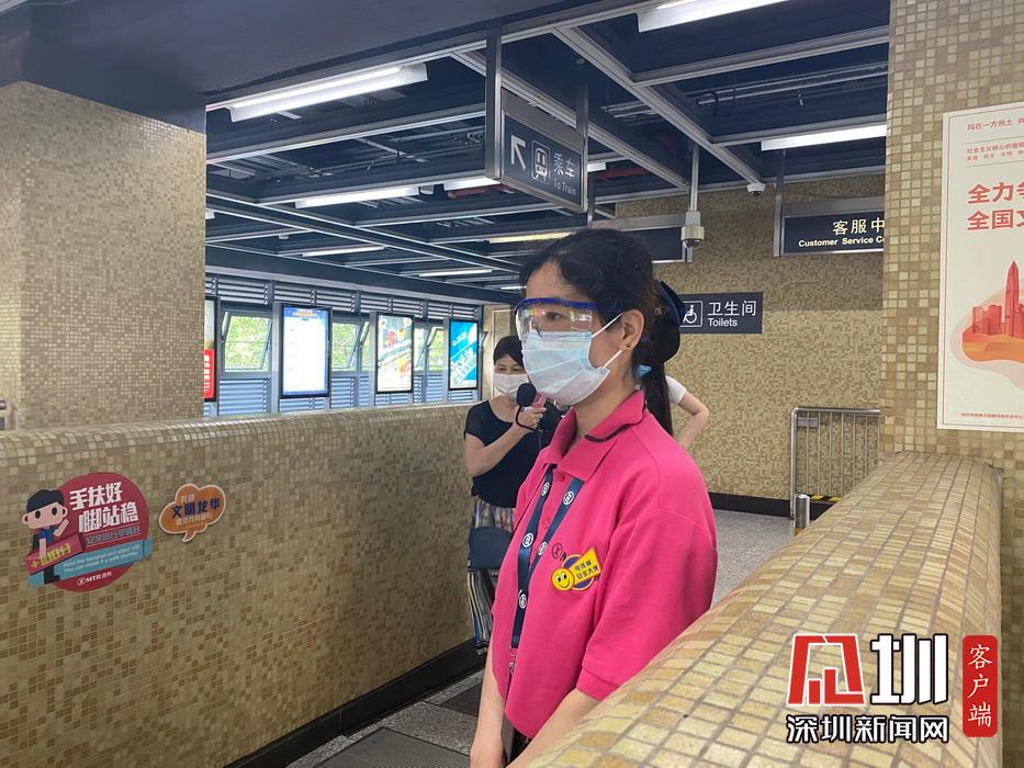 地鐵站內(nèi),一位工作人員整齊佩戴口罩與護(hù)目鏡,引導(dǎo)市民有序搭乘地鐵。