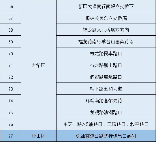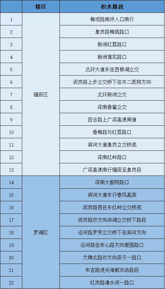 暴雨重點(diǎn)易積水路段(點(diǎn)位)