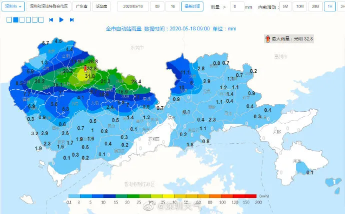 【深圳市分區(qū)暴雨黃色預(yù)警】預(yù)計(jì)福田區(qū),羅湖區(qū),南山區(qū),鹽田區(qū),大鵬新區(qū),西部海區(qū),東部海區(qū),寶安區(qū)(新安、西鄉(xiāng)、航城街道),龍崗區(qū)(南灣、坂田、園山、橫崗、布吉、吉華街道),龍華區(qū)(民治街道)和坪山區(qū)(馬巒、碧嶺街道)1-2小時(shí)內(nèi)將出現(xiàn)20-40毫米降水,深圳市氣象臺(tái)于2020年05月18日15時(shí)50分在上述地區(qū)發(fā)布暴雨黃色分區(qū)預(yù)警,全市進(jìn)入暴雨戒備狀態(tài),請(qǐng)注意防范。