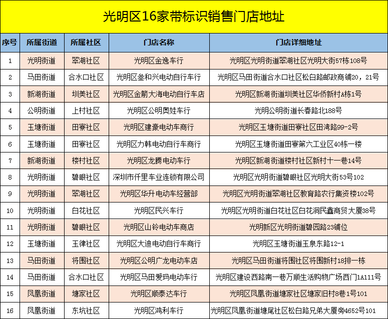 5月11日開(kāi)始,光明區(qū)共有16家門(mén)店啟動(dòng)“帶標(biāo)識(shí)”銷(xiāo)售試點(diǎn)工作。截至目前,共提交備案610輛,生成號(hào)牌610輛,安裝號(hào)牌316輛。