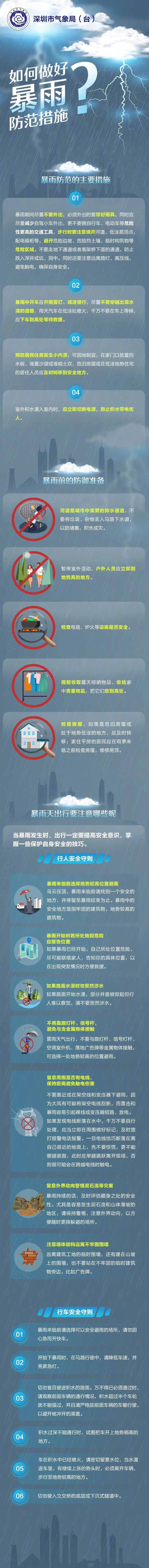 見圳客戶端·深圳新聞網(wǎng)2020年6月5日訊(見圳客戶端、深圳新聞網(wǎng)記者 鄭曉鵬)記者從深圳市氣象臺獲悉,受西南季風(fēng)影響,預(yù)計6-8日深圳市(含深汕)將出現(xiàn)今年以來最強“龍舟水”過程,有持續(xù)性暴雨到大暴雨,伴有8級左右雷暴大風(fēng),強降雨主要出現(xiàn)在6-8日的凌晨至上午;8日午后降雨減弱。9-12日多云,天氣轉(zhuǎn)熱。