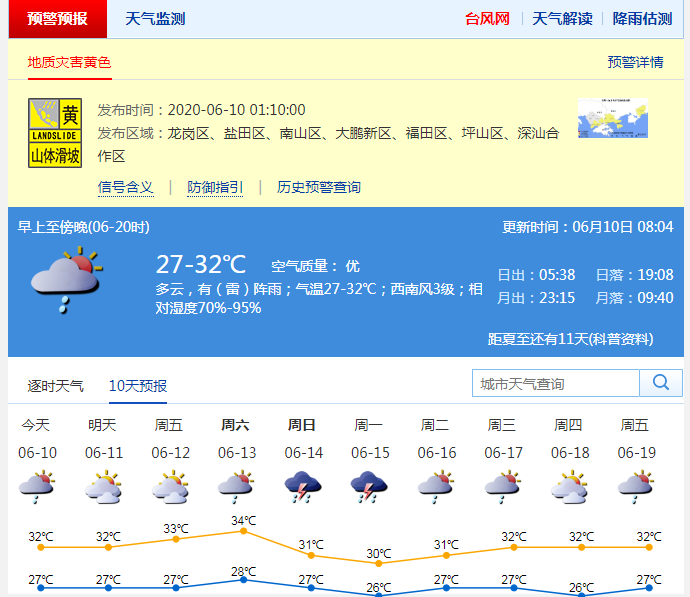 市氣象臺預(yù)測,10日我市(含深汕)多云,有短時(雷)陣雨,局部大雨,本輪“龍舟水”過程趨于結(jié)束。11-13日多云,有短時(雷)陣雨,天氣漸趨悶熱。